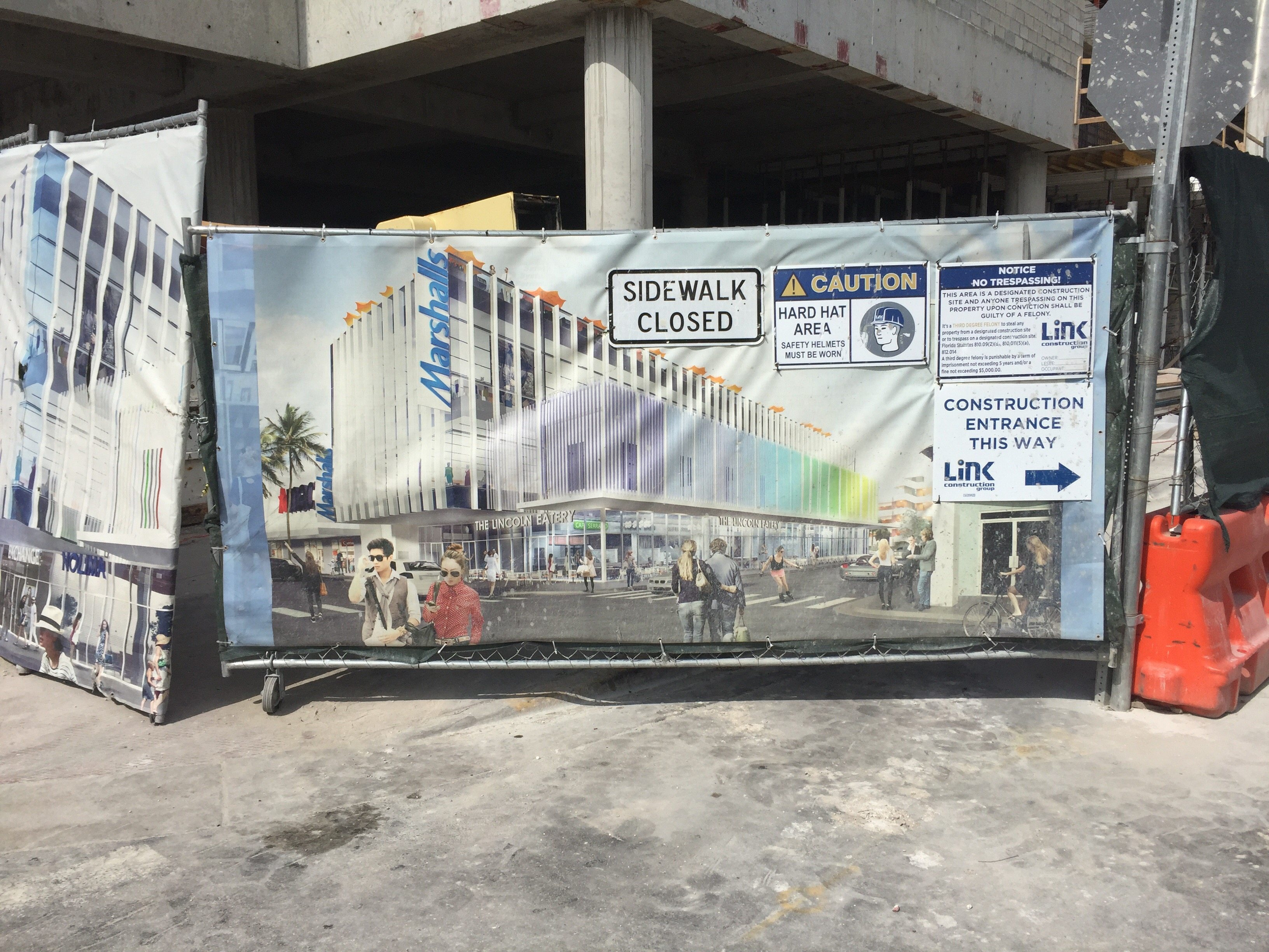 Lincoln Road always seems to be a hive of construction activity, considering its sky-high retail rents and eternal popularity with tourists and locals. (even those locals who proclaim Lincoln Road is dead. Come on.) Lately, construction continues to bring large new flagship stores to the road, as well as two new, dare we say, discount big-box stores. Luckily, due to the influence of the City of Miami Beach government as well as local activists, the architecture has stayed at a fairly high bar.