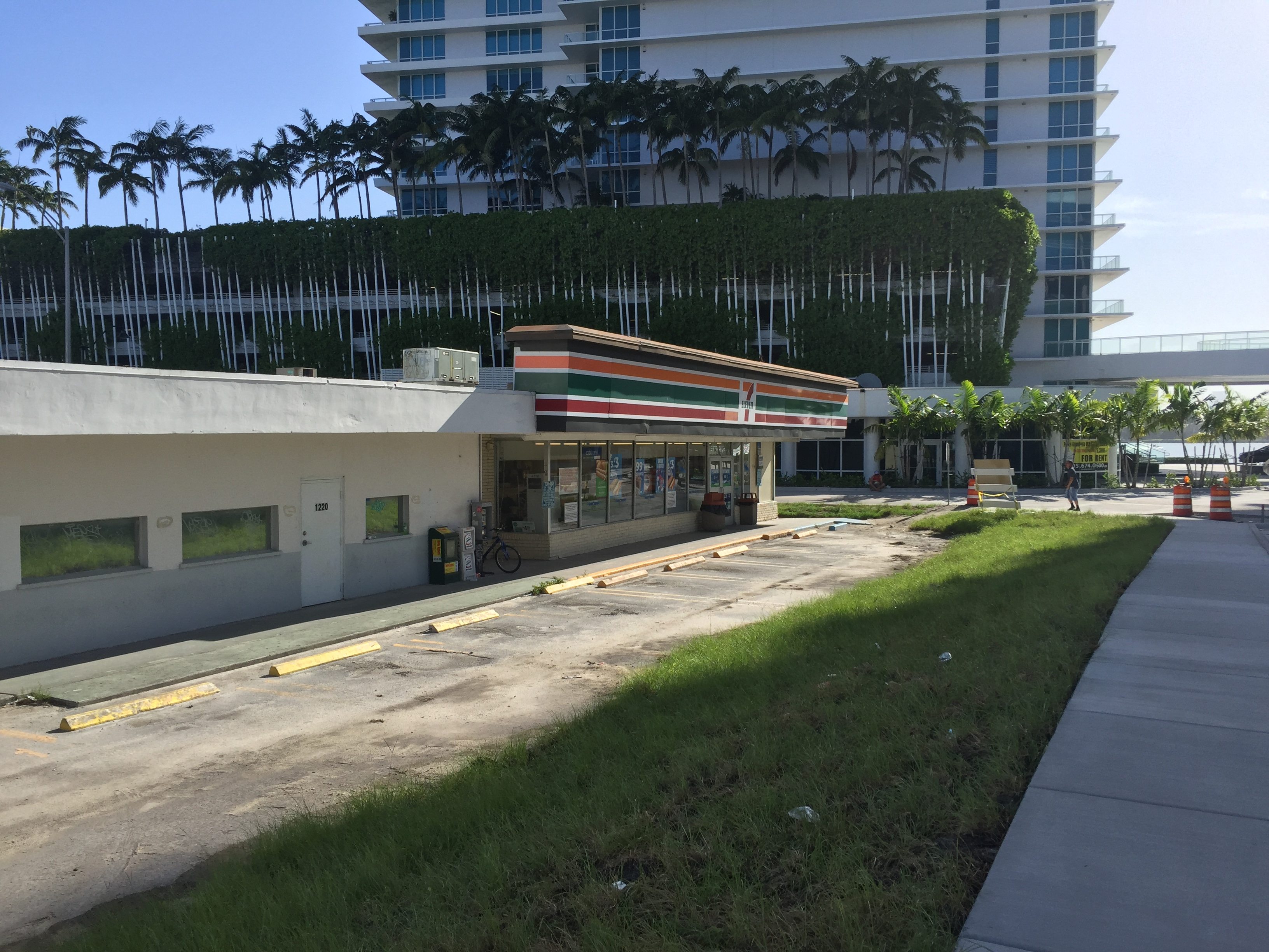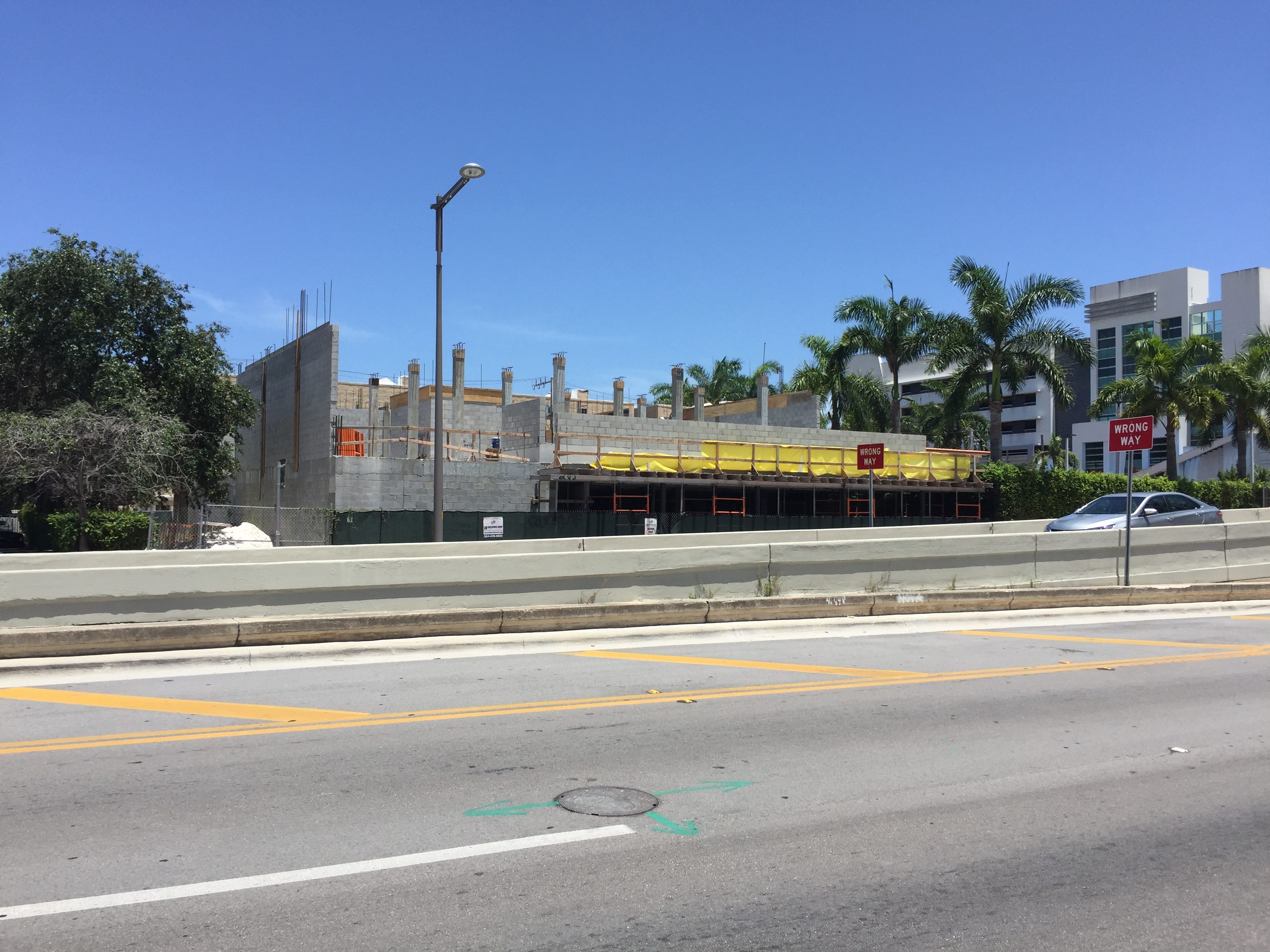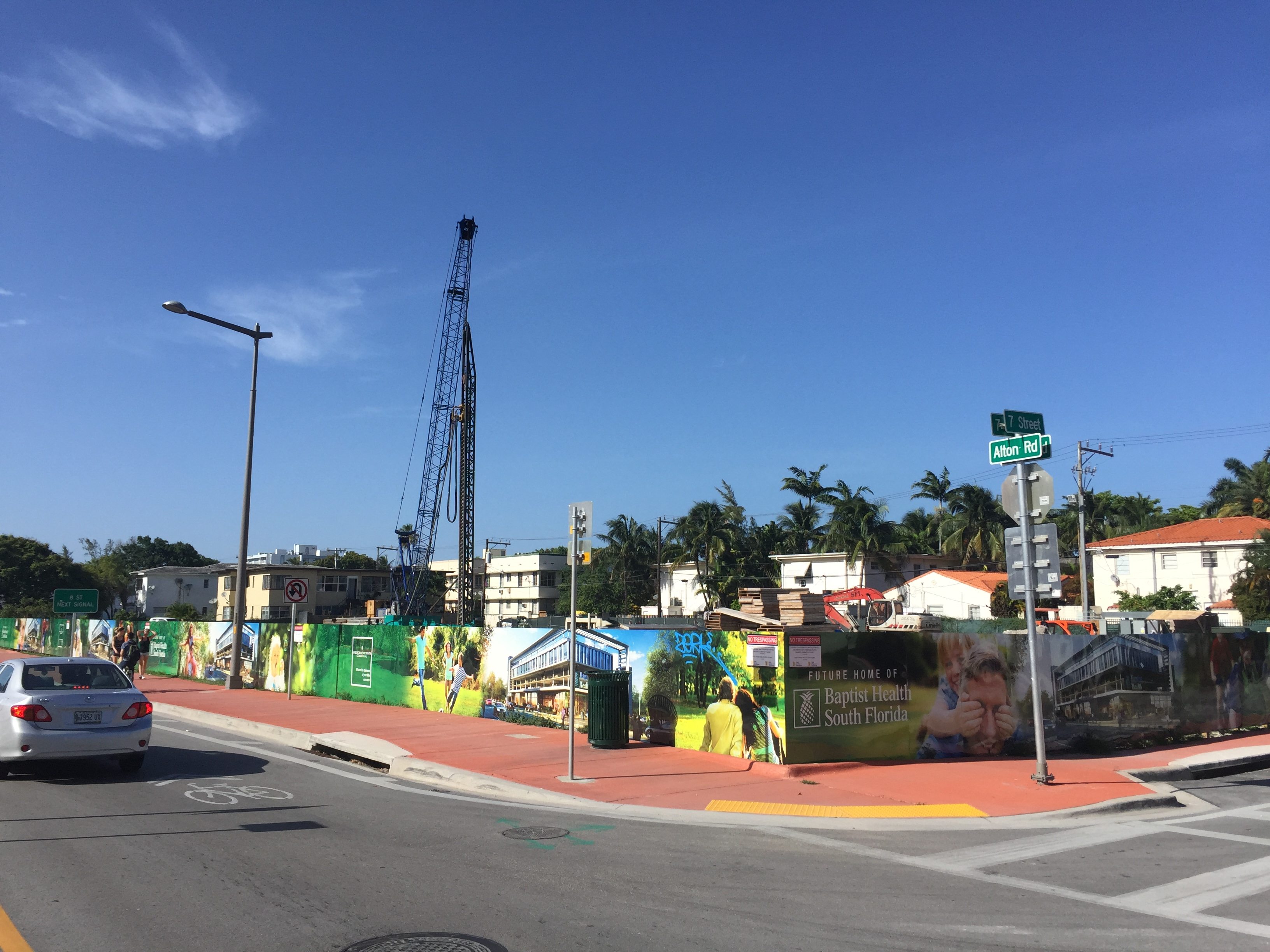 Multiple construction projects just north of the intersection of 5th Street and Alton Road are transforming the face of the street in that area, from a series underutilized and neglected lots near the prime entrance to Miami Beach to an attractively urban cityscape. The obtuse intersection however, notable for its flyover from the MacArthur Causeway and hostility to pedestrians, has yet to follow with a makeover. I almost died taking the photo above.