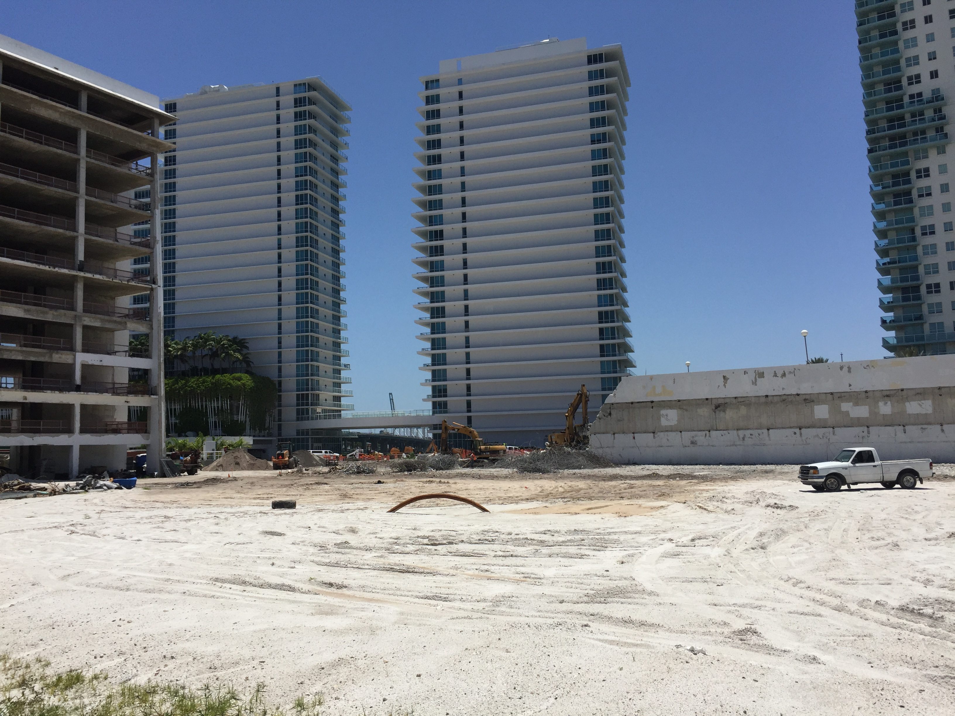 On the east side of Alton, at 6th Street, the very attractively designed Urban Box Self Storage (how often is self storage sexy, really?) is well under construction. North of it, developers Crescent Heights (which is dominating new developing all along Alton with a series of quite fetchingly designed buildings) are building a new healthcare center for Baptist Hospital. Construction has already broken ground on that. Last, and by far the biggest, Crescent Heights is clearing and gutting two entire blocks it owns between 5th and 7th on the west side of Alton while lobbying the city for permission to construct a 300-foot tower on the land in exchange for building a new mass transit hub in the base. Until then, a 7-11 still sits splat in the middle of his land even though the convenience store’s old parking lot is half buried under the mountain of an elevated street.