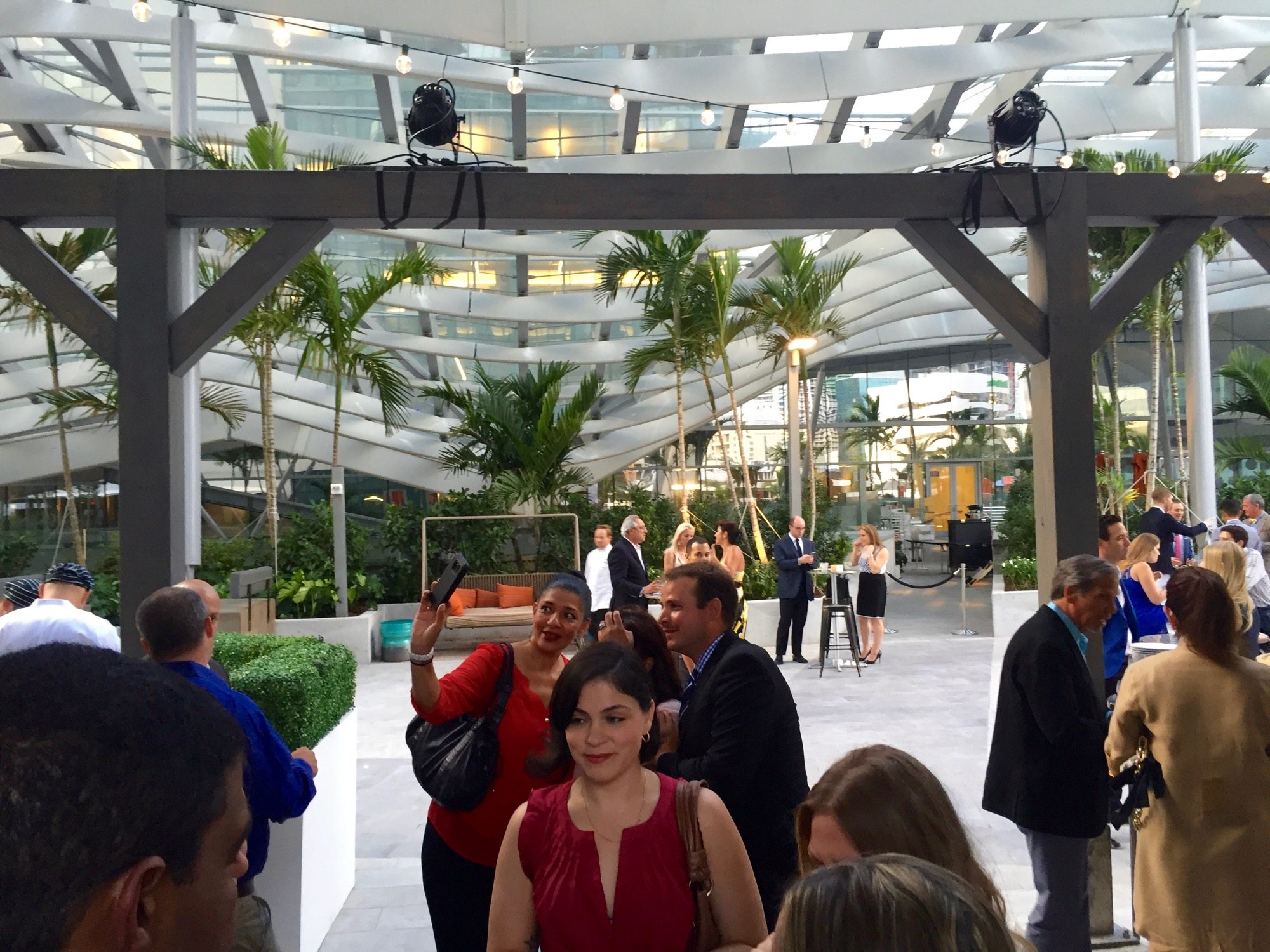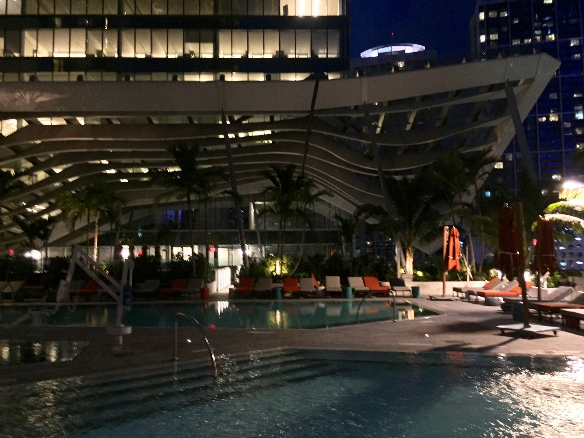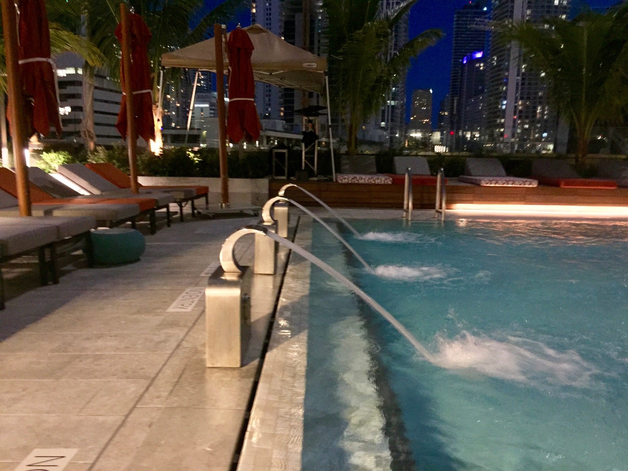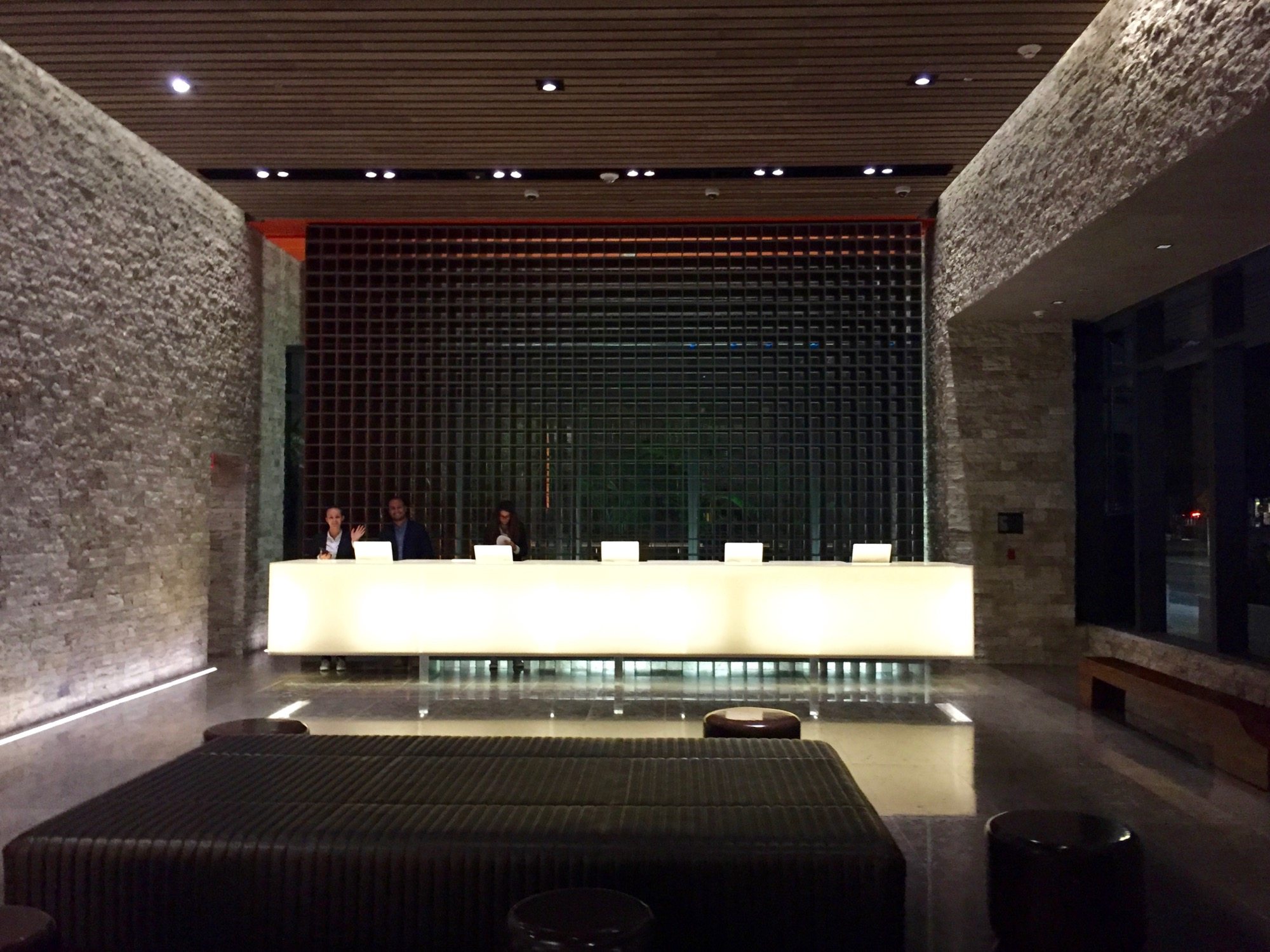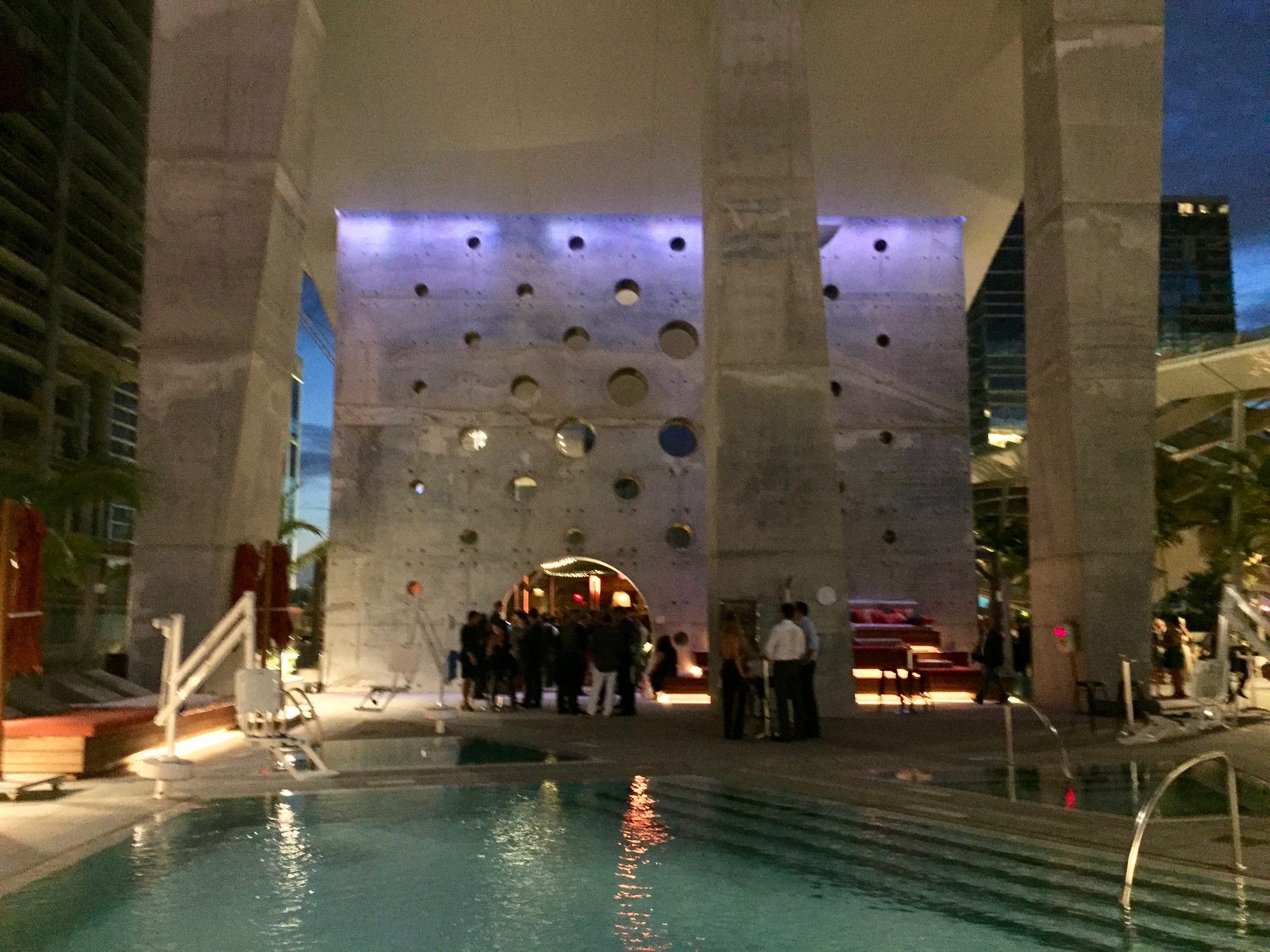 Last night we were lucky enough to attend an event, the PAMM Corporate Cocktail, at the brand-spanking-new East Hotel at Brickell City Centre, which is currently in its soft opening. The party and the venue were both spectacular, and the service was wonderful. Although not a full tour of the building (that’s coming soon) we did get a good look at some of the more spectacular elements including the lobby, the pool deck, the incomplete mall, and of course the famed ‘climate ribbon’ sun shade. The hotel has begun taking reservations for dates starting May 31st. And now, a quick tour in thirteen photographs.