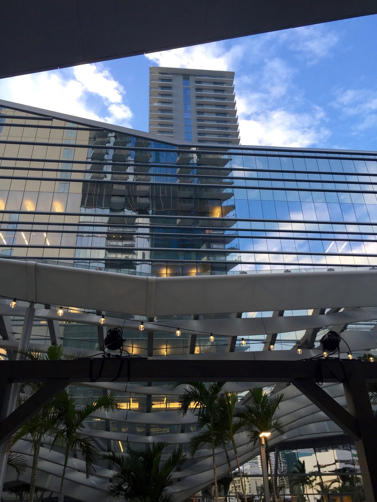 Underneath the climate ribbon, the incomplete mall is visible from the hotel. Photos by Sean McCaughan.