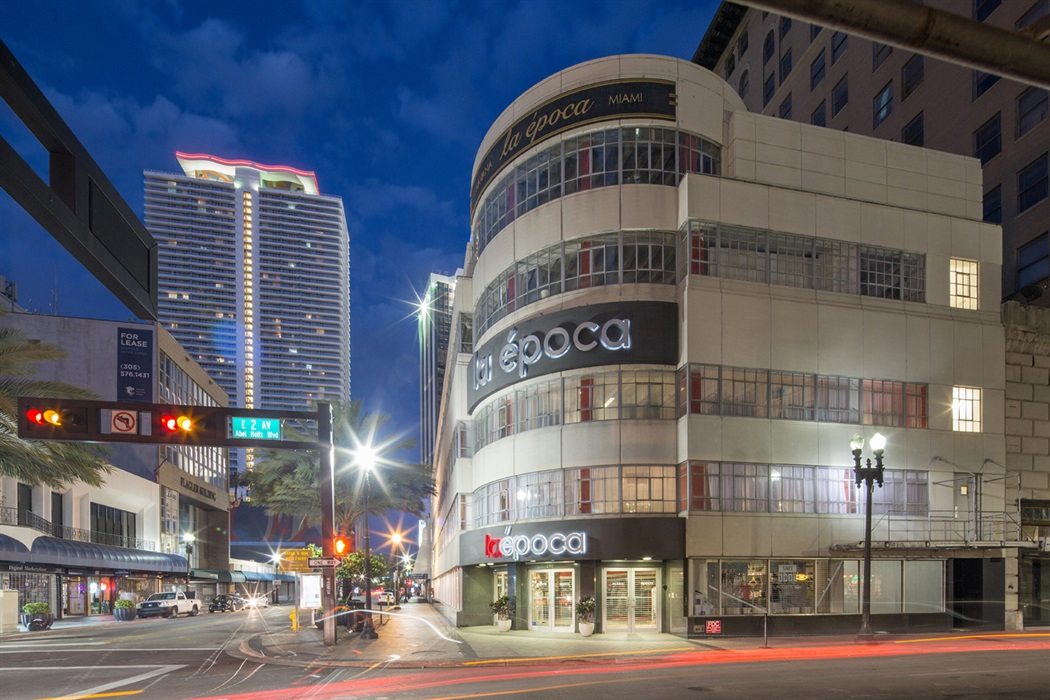 The historic Walgreens Building on Flagler and E. 2nd Street, a beautiful classic streamlined moderne retail building from the art deco era that in recent years was home to the la época department store (which has its own fascinating history), has hit the market. With 5 stories above ground and 1 below, the 50,000 square foot structure has that rarest of Miami amenities, an actual basement. Inside is a grand, three-story atrium space with circular staircase and glass elevator, which originally contained, believe it or not, a Walgreens Drug Store. The price is “To be determined by the market” apparently, but if your’e a serious buyer (who intends to treat it as well as it deserves and not tear it down for some ugly P.O.S.), the Walgreens building is listed by Gerard Yetming and Mika Mattingly of Colliers International Realty. So, go ask them.