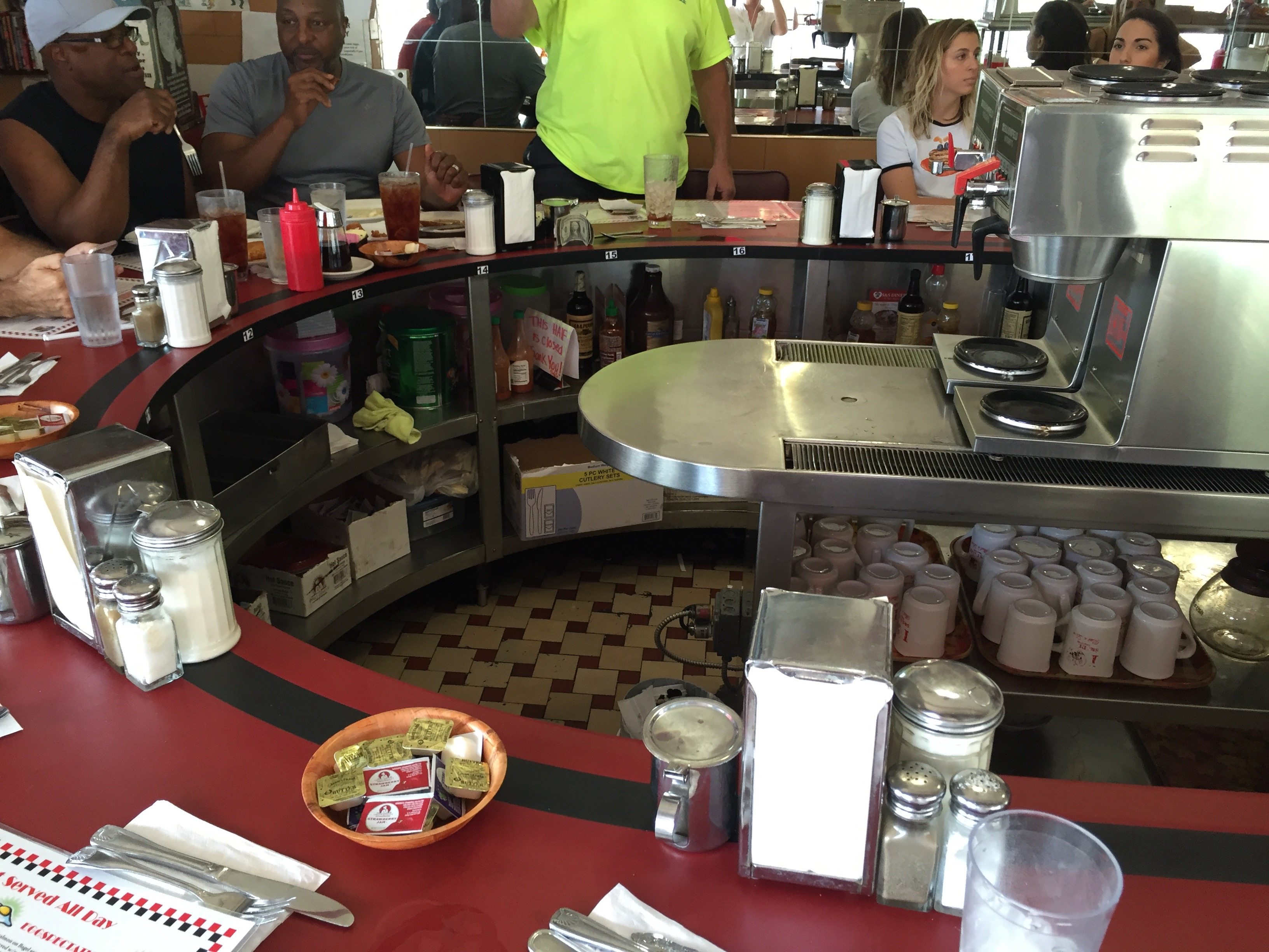These are uncertain times for one of Miami’s most historic dining establishments, the art deco S & S Diner on North Miami Avenue and 17th Street, across from the old Miami City Cemetery. Due to a lease dispute with the property’s new owners the diner, which has been open constantly since 1938, was almost evicted, and the diner’s owner, Simon Elbaz, is fighting the hard fight in court. Although at one point last week, the S & S could have really been evicted at any time, the diner was granted a small reprieve, and its case is currently pending. Of course that means they may only have a few more months to go, but that’s enough time to check out the good ol’ S & S for breakfast or lunch while it’s still around. Fingers crossed it stays. We went for lunch on Friday.