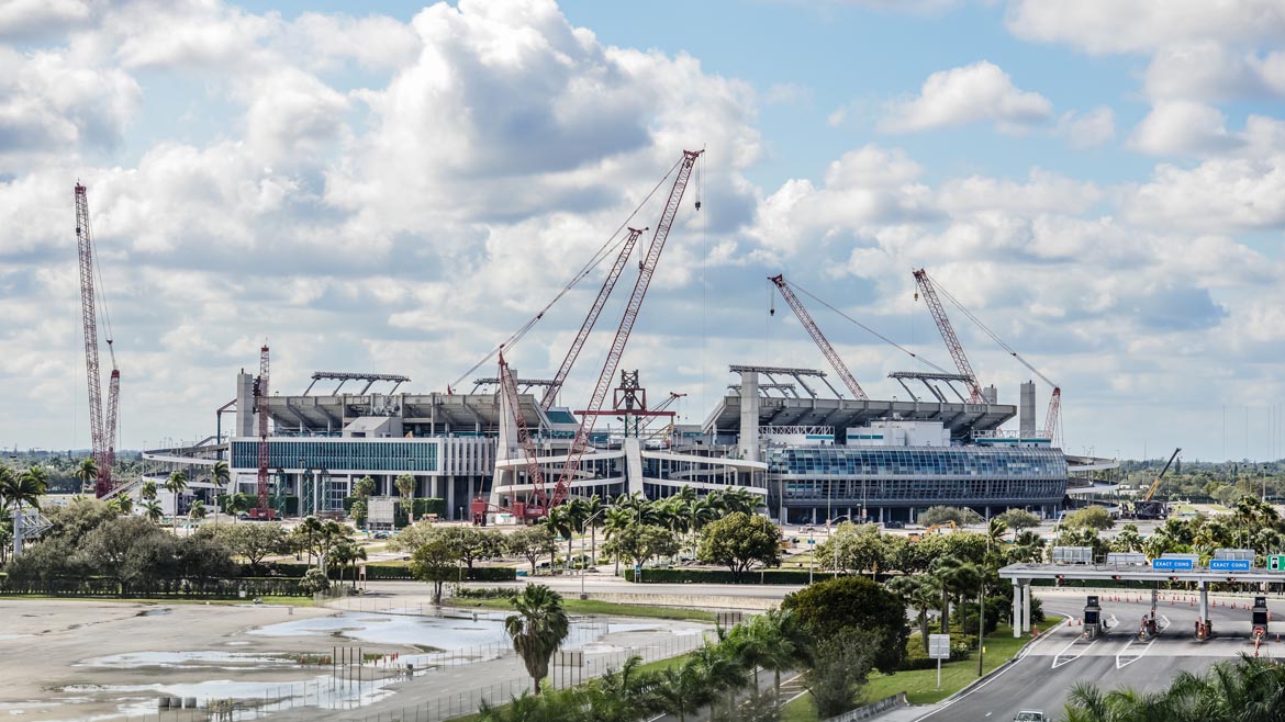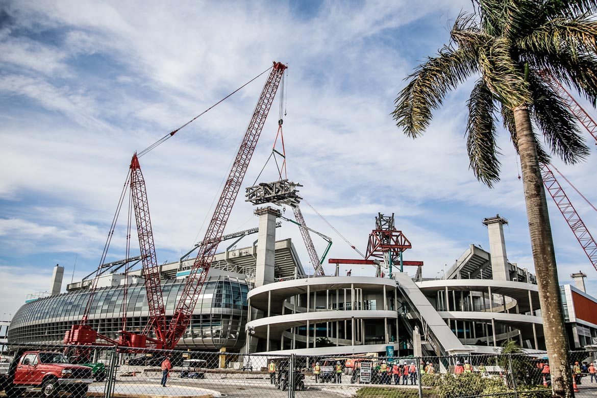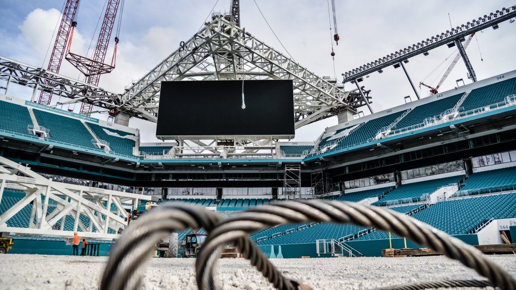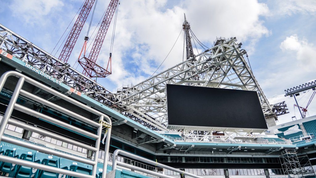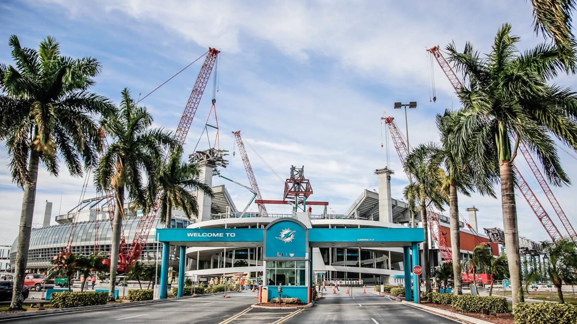 The Super Bowl is officially returning to Miami in 2020. However, the shade canopy at Dolphins Stadium, a massive structure now under construction, has to be done in about three months. The Dolphins play the Falcons August 25, meaning the awning has to be done by then. The rush to upgrade the Miami Dolphins Stadium is tight, and now comes with Super Bowl-sized stakes too.
