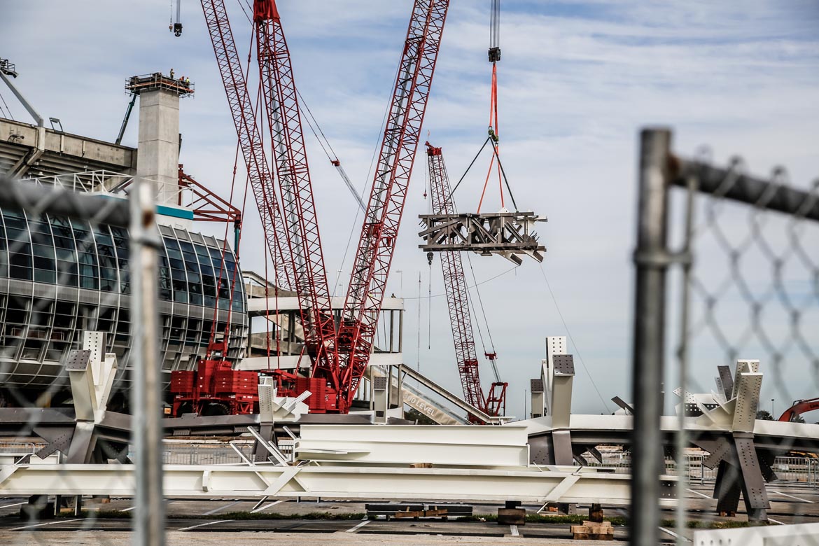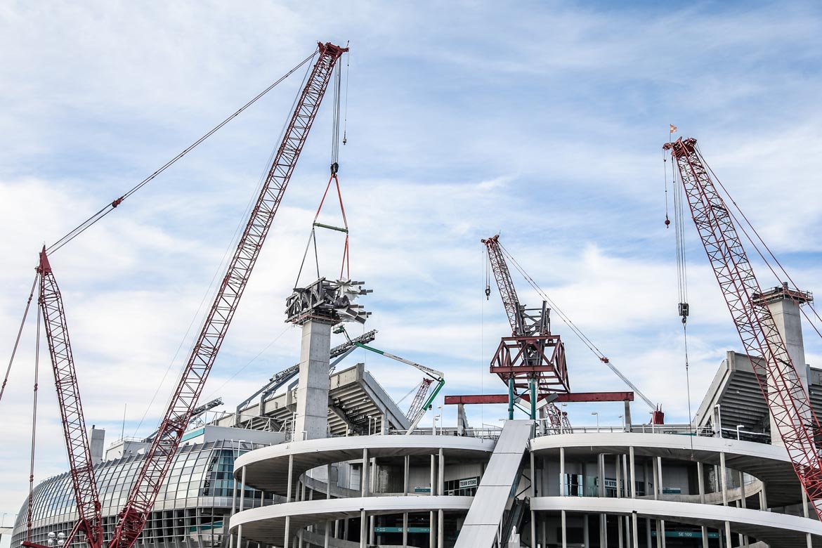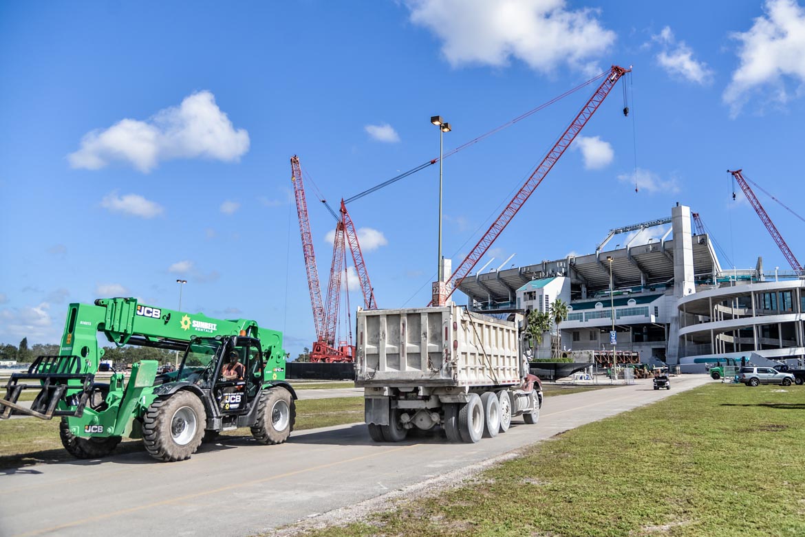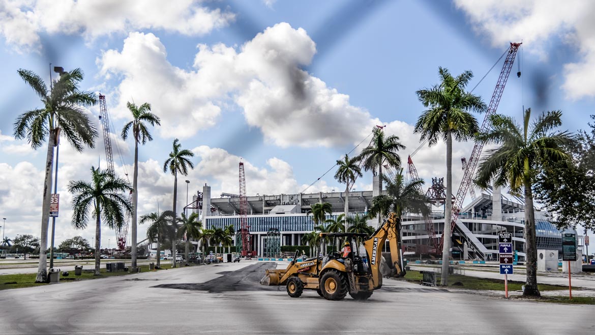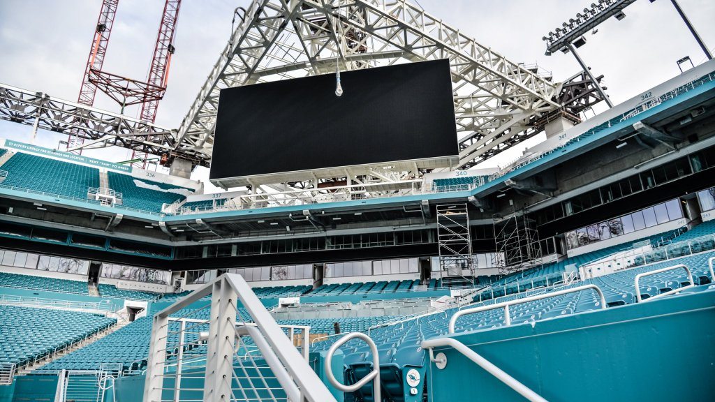 The Super Bowl is officially returning to Miami in 2020. However, the shade canopy at Dolphins Stadium, a massive structure now under construction, has to be done in about three months. The Dolphins play the Falcons August 25, meaning the awning has to be done by then. The rush to upgrade the Miami Dolphins Stadium is tight, and now comes with Super Bowl-sized stakes too.